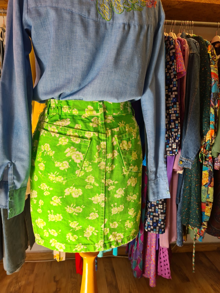 חצאית ג'ינס ירוקה פרחונית מידה S
