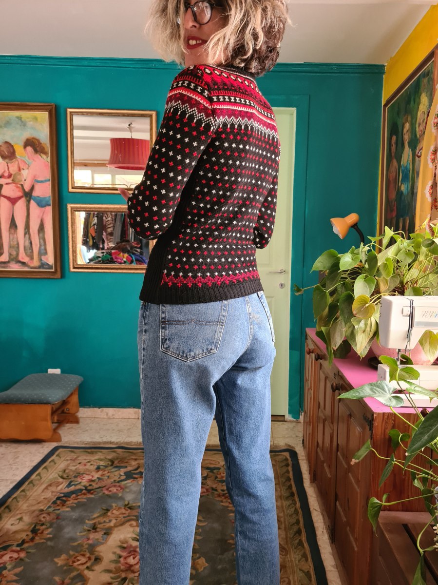 קרדיגן סקנדינבי באדום ושחור מידה S/M
