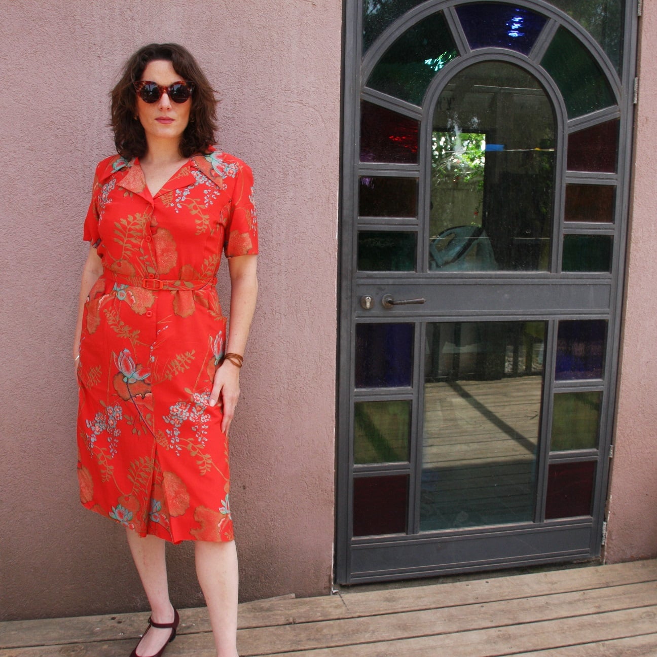 שמלת משי אדומה פלאית מידה L